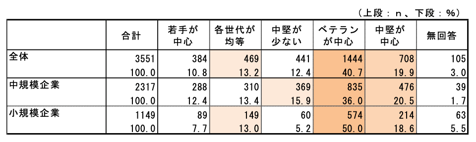 ・ベテランが40.7%を占め、若手・中堅層の不足が顕著に表れている