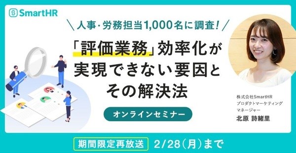人事・労務担当1,000名に聞いた調査結果をもとに、「人事評価」に関する業務効率化が進まない要因について説明しつつ、それらの解決法をSmartHRの新サービス「人事評価」機能の説明を交えながらご紹介します。