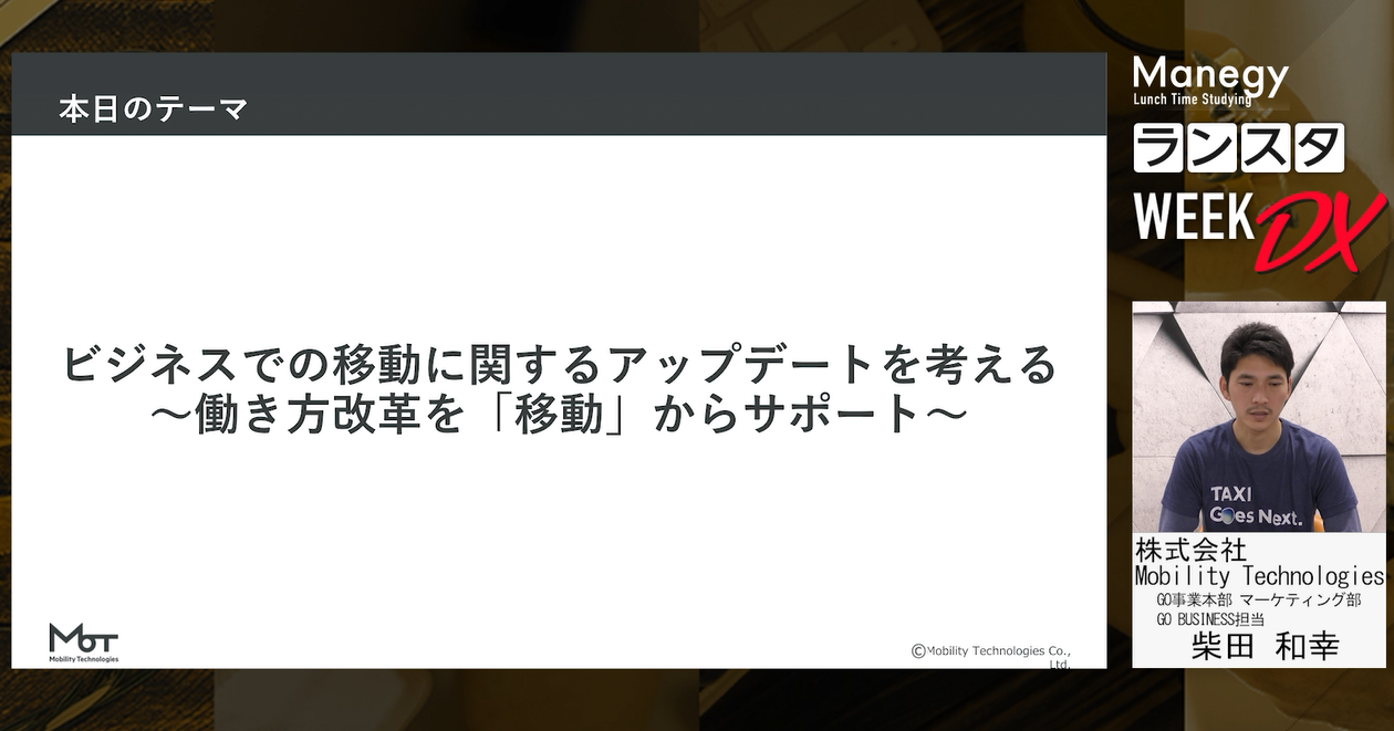 シリーズ第6弾は、株式会社Mobility Technologies様で『ビジネスでの「移動」に関するアップデートを考える 〜働き方改革を「移動」からサポート〜』についてご紹介します。