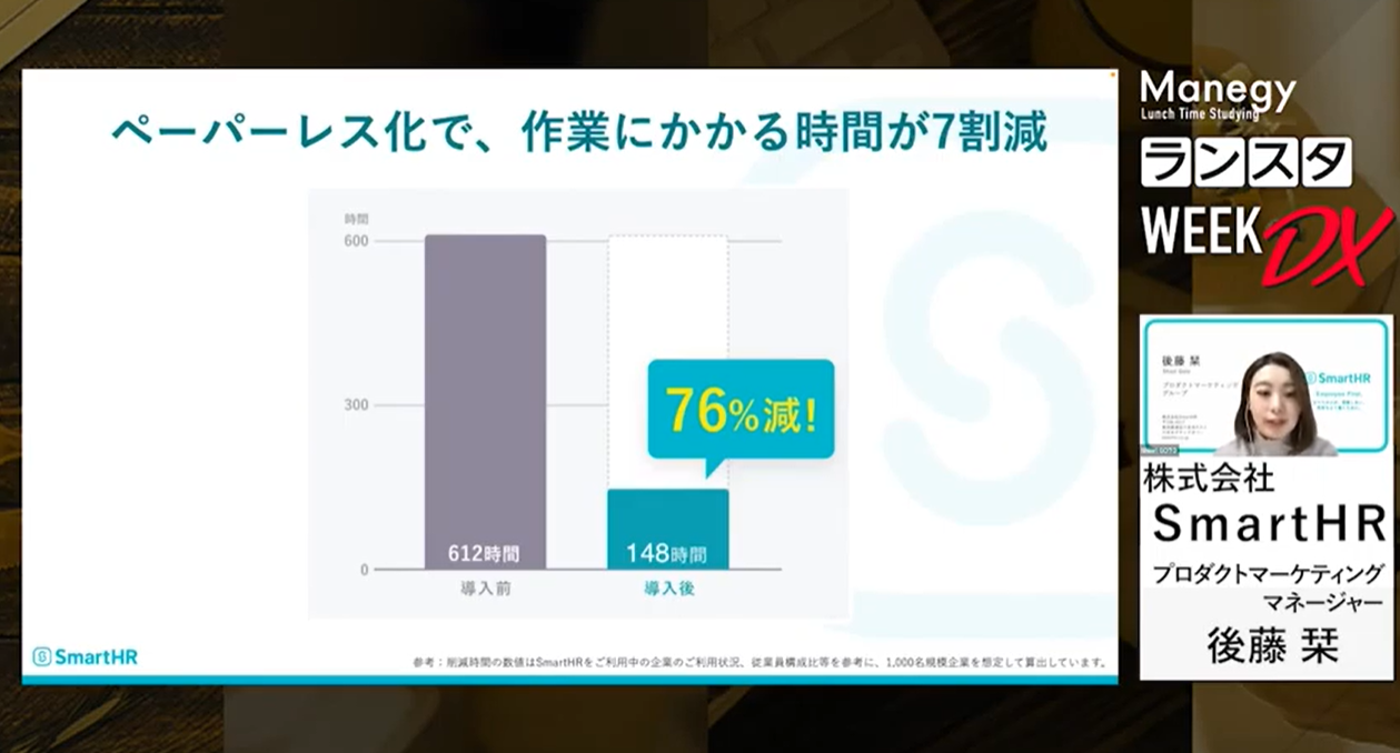 シリーズ第2弾は、株式会社SmartHR様で『業務負荷70%減!「効率化のその先」を見据えたペーパーレス入社手続きの進め方』についてご紹介します。