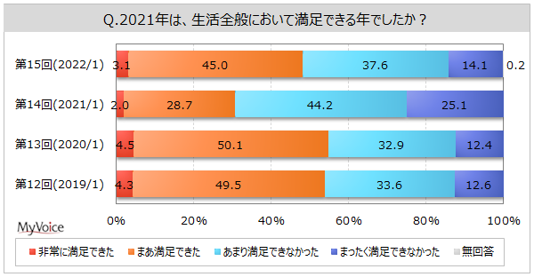 本アンケートでは最初に、2021年は満足できる年だったか、生活全般について尋ねた。
