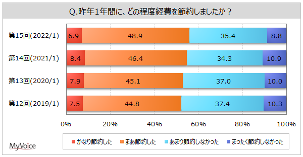 次に「昨年1年間で、あなたのご家庭ではどの程度経費(物事を行うのに必要な費用)の節約を行いましたか」と質問した。