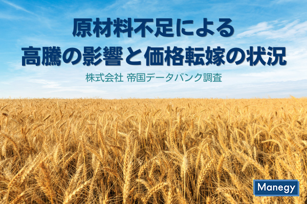 帝国データバンクの調査によると、自社の主な商品・サービスに、「原材料不足や高騰の影響がある」とする企業は77.3%で、「影響はない」とする企業は12.2%である。その原材料不足や高騰の影響を、「価格転嫁ができていない」企業は36.3%だ。