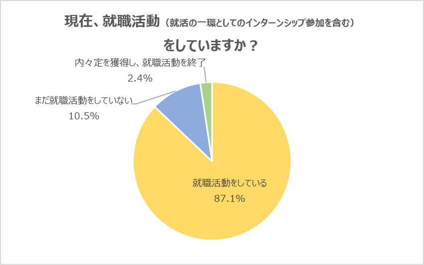 本アンケートでは最後に「現在、就職活動(就活の一環としてのインターンシップ参加を含む)をしていますか?」と尋ねている。