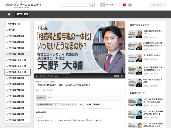 そこで注目したいのが、税理士法人としておなじみの株式会社レガシィ(本社:東京都千代田区、代表取締役社長:天野 大輔氏)が提供している5分動画配信サービス「侍TALKS(サムライトーク)」だ。こちらは士業・侍業(税理士、弁護士、司法書士など)を対象にしたサブスクリプションサービスであり、彼らの事業に関わる情報や関心を持ちやすそうなトピックスを、約5分という短時間で動画にまとめて配信している。実際に現場で活躍中の信頼できる専門家が情報を発信し、まさに“生きた情報”をリアルタイムで伝える新サービスである。