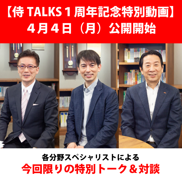 このたび「侍TALKS」はサービス提供開始から1周年を迎えたため、1周年記念特別動画を公開している。特別動画では特別なゲスト講師が2人登場し、今回限りの特別トークと対談を実施した。