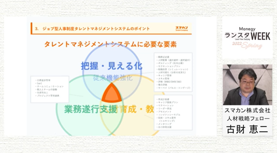 シリーズ第6弾は、スマカン株式会社 古財 恵二 氏による『ジョブ型 / ハイブリッド型人事戦略を実現する-タレントマネジメント活用法はこれだ』について。