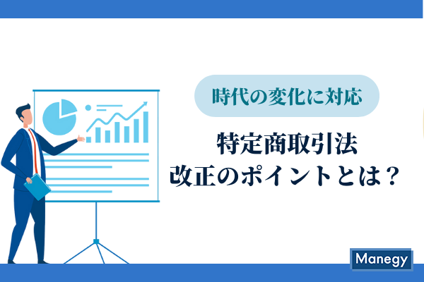 多様化する近年の商取引に対応して、消費者を守り取引の公正を図るための改正です。この記事ではその主な改正ポイントと、特定商取引法の基礎的な内容について解説します。