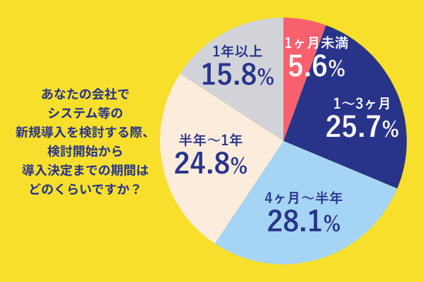 突然ですが、あなたの会社でシステム等の新規導入を検討する際、検討開始から導入決定までの期間はどのくらいですか?