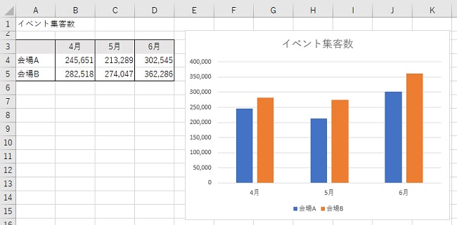 グラフの見た目を整えるには、グラフの部位ごとにポイントを抑えて設定変更などを行っていく。図1は標準のデザインのままのグラフである。これを例に解説する。