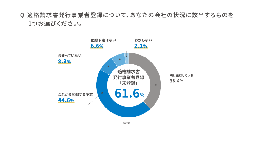 ・適格請求書発行事業者登録について6割以上が「未登録」という結果に。