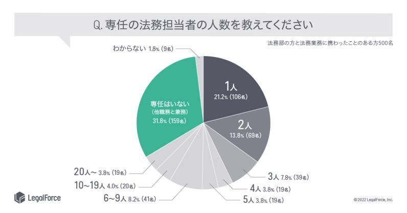 ・31.8%(159名)が法務担当者の「専任はいない(他職務と兼務)」と回答。