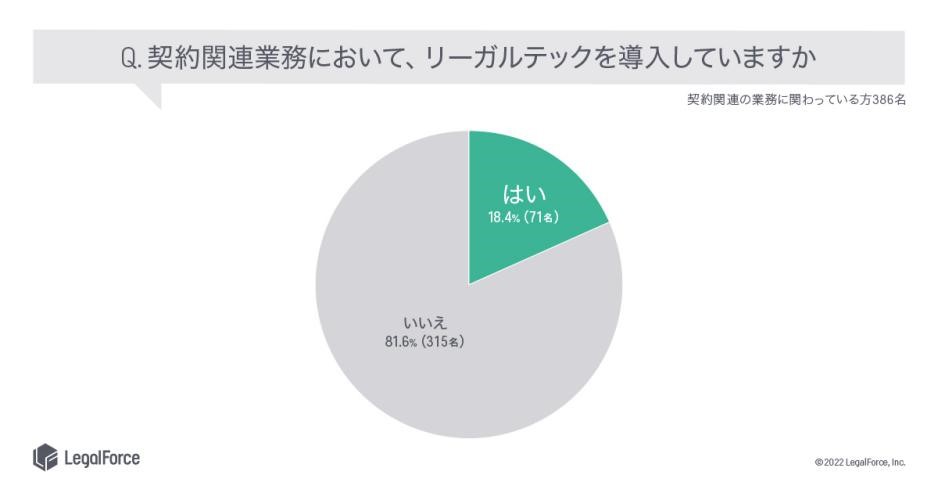 ・契約関連業務においてリーガルテックを導入している割合は18.4%。