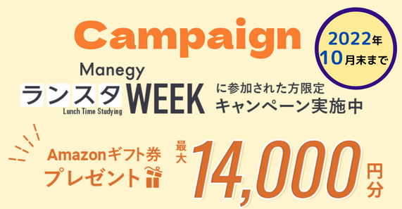 今回「第8回 ManegyランスタWEEK-2022-Autumn-」にご参加された方限定で、最大14,000円分のアマゾンギフト券がもらえるキャンペーンを実施しております。