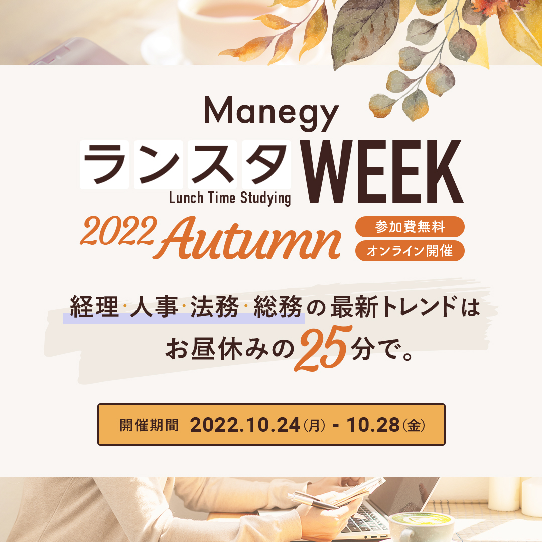 「ManegyランスタWEEK」とは管理部門と士業のためのビジネスメディア「Manegy」にて、経理・財務・人事・総務・法務・経営企画等の管理部門領域で働く方々向けに定期的に開催するランチタイムウェビナーです。