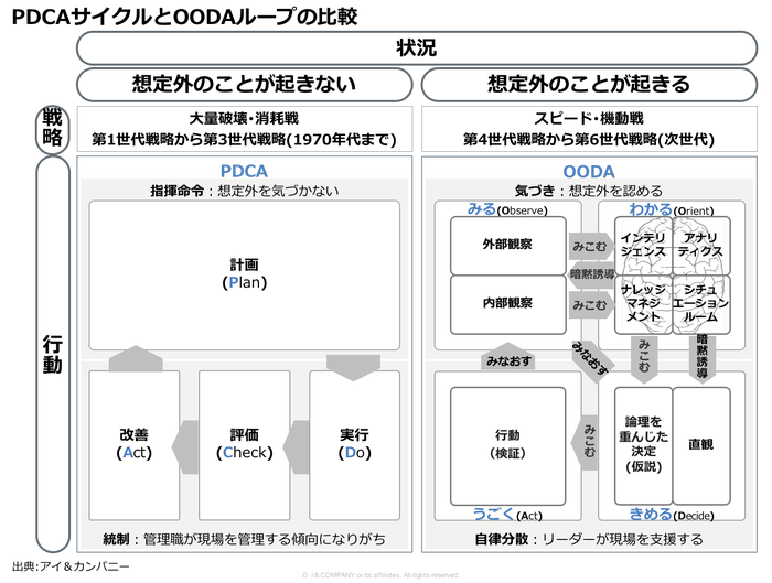 PDCAとOODAの違いをわかりやすく示すと下図のようになります。
