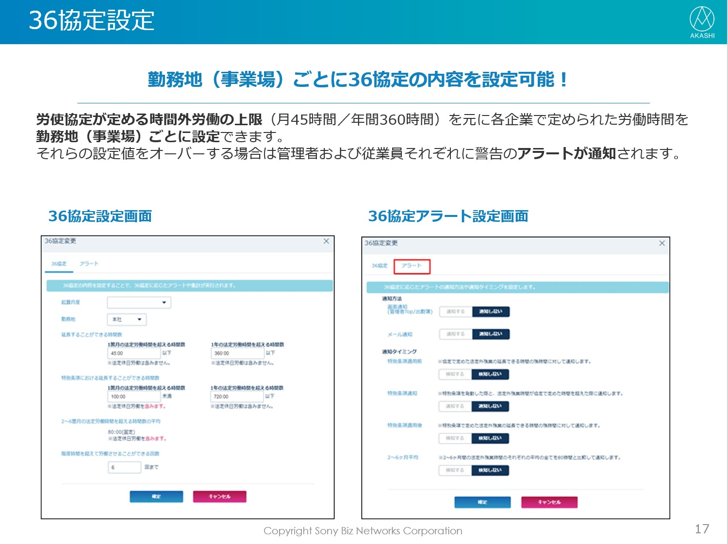 今後、さまざまな変化を遂げるであろう働き方改革や法改正に対し、「AKASHI」なら企業ごとに異なる就業規則の設定ができ、法改正に対応する機能を追加するなどフレキシブルに対応いたします。