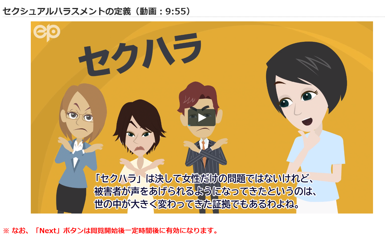 セクハラ・アカハラ防止からメンタルへルスケアまで、1つの教材で学習できる! 「Q&Aで学ぶ 働きやすい職場づくり」は、インターネットで学ぶeラーニング教材。 時間や場所を問わず学習でき、従業員の皆様に効率よく知識を浸透させることのできる新しい学習方法です。 こちらでは、企業の全社員教育用として開発されたハラスメント研修「Q&Aで学ぶ働きやすい職場づくり」を教材構成はそのままに、ケース解説を大学向けにカスタマイズした大学版をご紹介します。 <このような大学にお勧めします。> ・事件が起こる前に対策をしたいけれど、教職員向けの研修は何をどこまでやればいいのかわからない ・ハラスメントとメンタルヘルス、両方の研修をやりたいけれど、長時間の研修実施は難しい ・教職員向けに行うなら、本学の規程も盛り込んだ独自の教材にしたいが、予算が限られている