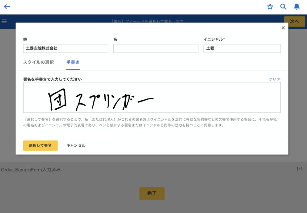 米国電子署名法では、「電子署名」を、「契約などの記録に添付または論理的に関連付けられており、記録に署名する意思を持つ個人により実行されるか適用される、電子的なサウンド、記号またはプロセス」と規定しています。電子署名は、採用通知、販売契約書、許可書、賃貸/リース契約書、免責同意書、財務書類などの電子署名に使用されています。電子署名は、世界のほぼすべての国におけるビジネス取引と個人の取引において法的に有効です(適用できる文書は国や自治体ごとに異なりますのでご注意下さい)。もちろん日本でも安心してお使いいただけます。