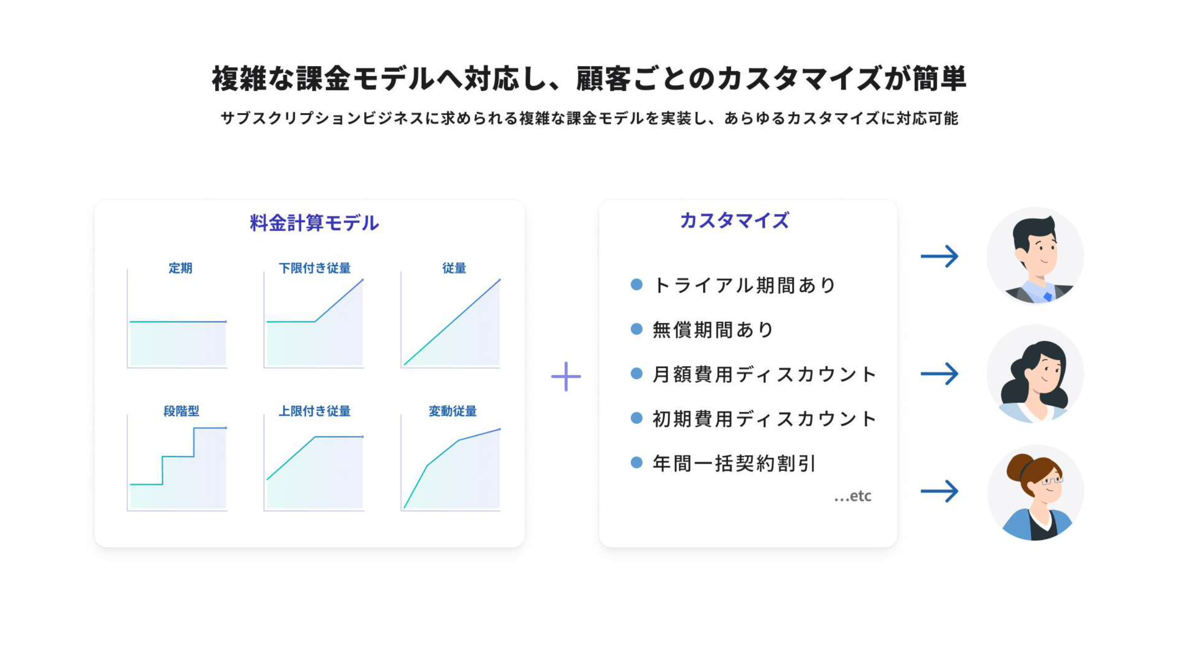 - 定額・従量・多段階従量・使用量課金といった多様な料金計算モデルを標準機能でご用意