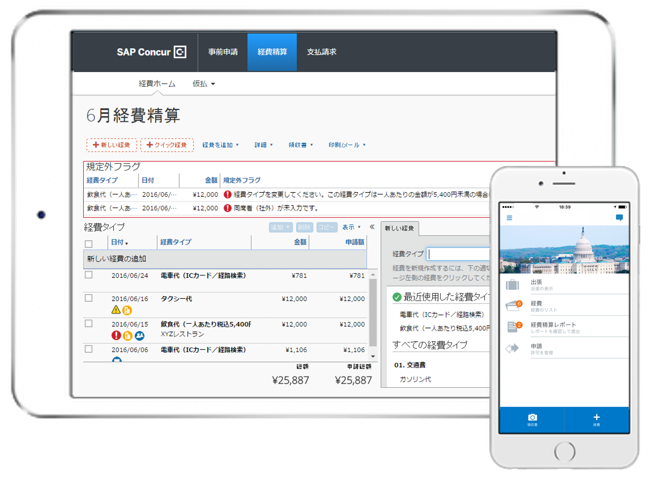 Concur Expense Standard は、経費精算業務を徹底的に効率化することはもちろん、 企業固有の経費規定に基づいた不正・違反の自動チェックや、蓄積データを活用した経費の見える化により、経費管理体制の強化を実現するクラウドシステムです。 現場の社員から経理担当者、経営者まで…Concur Expense Standard なら経費精算から解放します!