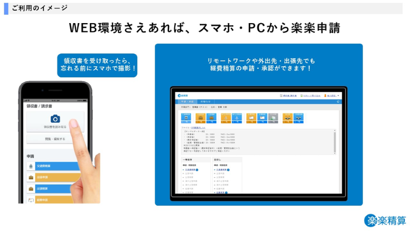 ┗経費精算機能でペーパーレス化!「楽楽精算」ならWEB上で経費申請から処理まですべてが完結!