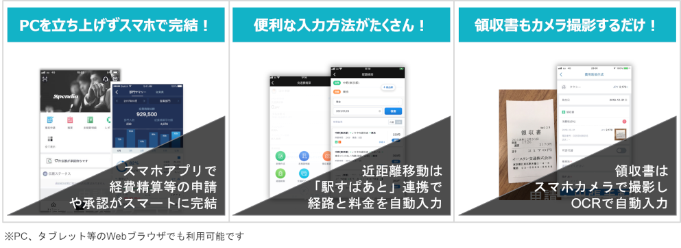 次世代経費精算モバイルアプリケーション「Spendia クイック導入版」!いつでもどこでもスキマ時間に申請・承認完了!ニューノーマルで機動的な働き方を後押しし、業績向上に貢献するスマートフォンを最大活用した経費精算・ワークフローのクラウドサービスです。