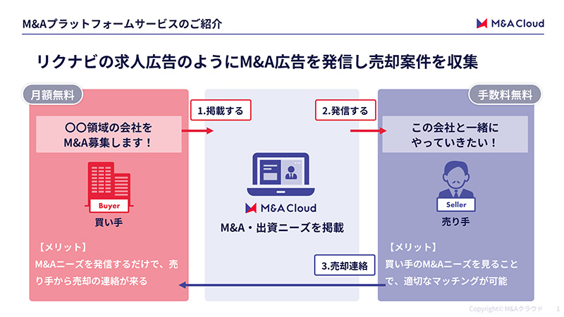 ・仲介業者を通さず直接売り手企業様とやりとりできる