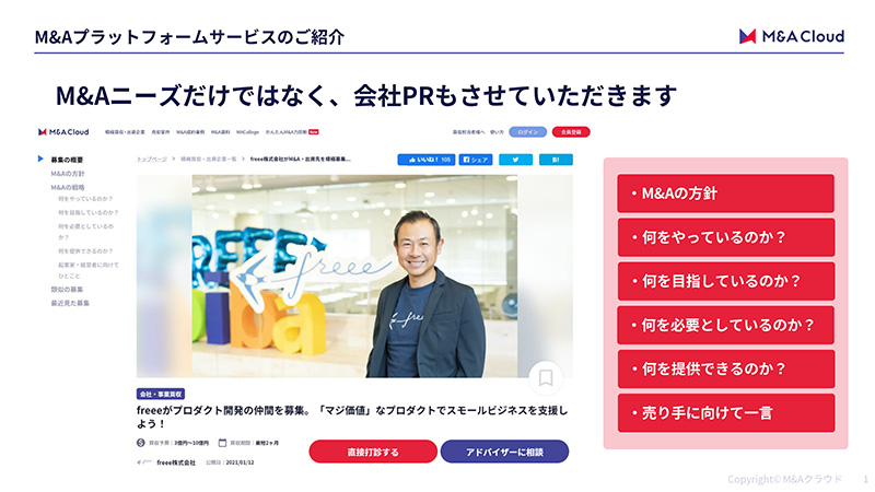 ・M&Aニーズだけではなく、会社PRもさせていただきます
