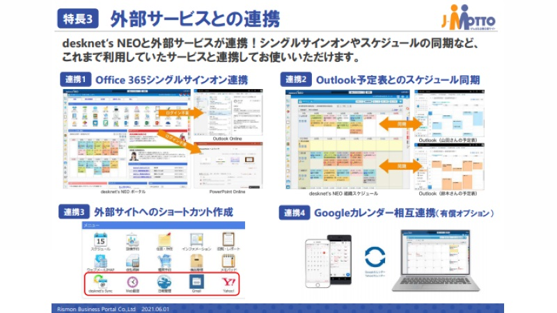 | 連携サービス | Microsoft365 / GoogleWorkspace / Googleカレンダー / オプションサービス各種 |