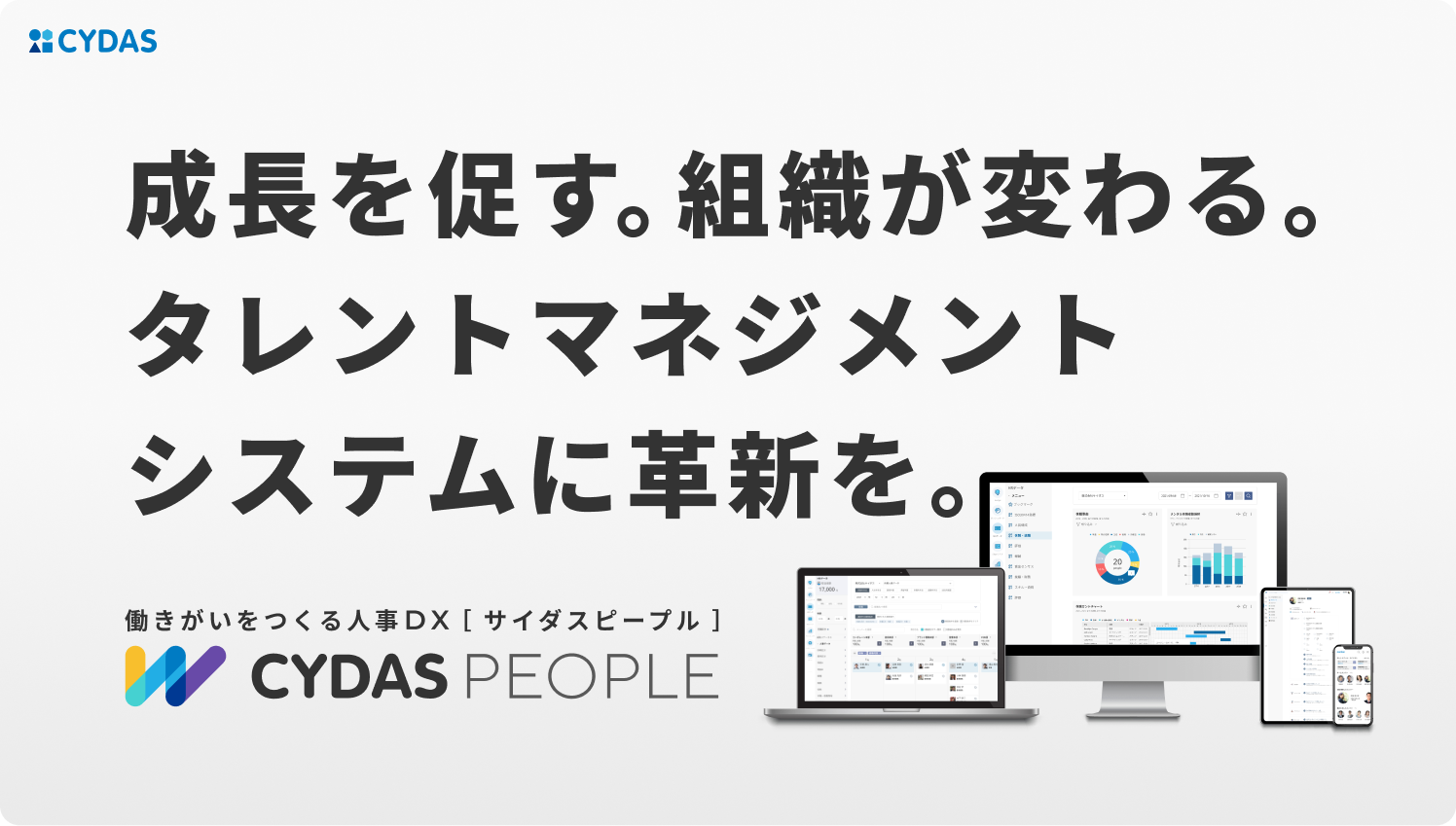 サイダスピープルは「働きがい」に着目したタレントマネジメントシステムです。人材情報の一元化、評価、育成、キャリア開発まで。働くすべての人が使えるシステム設計で、最新のデータを人事施策に活用。組織の成長につながる人事DXを実現します。 効率化を目的としたタレントマネジメントシステムとは異なり、「働きがい」をつくるには?という視点から機能を追求。 一人ひとりの意思や価値観等のキャリアプラン、結婚出産・異動希望等のライフステージ等、変動しやすい「動的データ」も入力を促す機能で確実にキャッチし、最新のデータを人事施策に活かせます。 【サイダスピープル IT導入補助金2022「IT導入支援事業者」に認定】 補助対象となる中小企業・小規模事業者は、 導入にかかる費用の50%、最大450万円まで補助交付金が受けられます。 詳細はお問い合わせください。