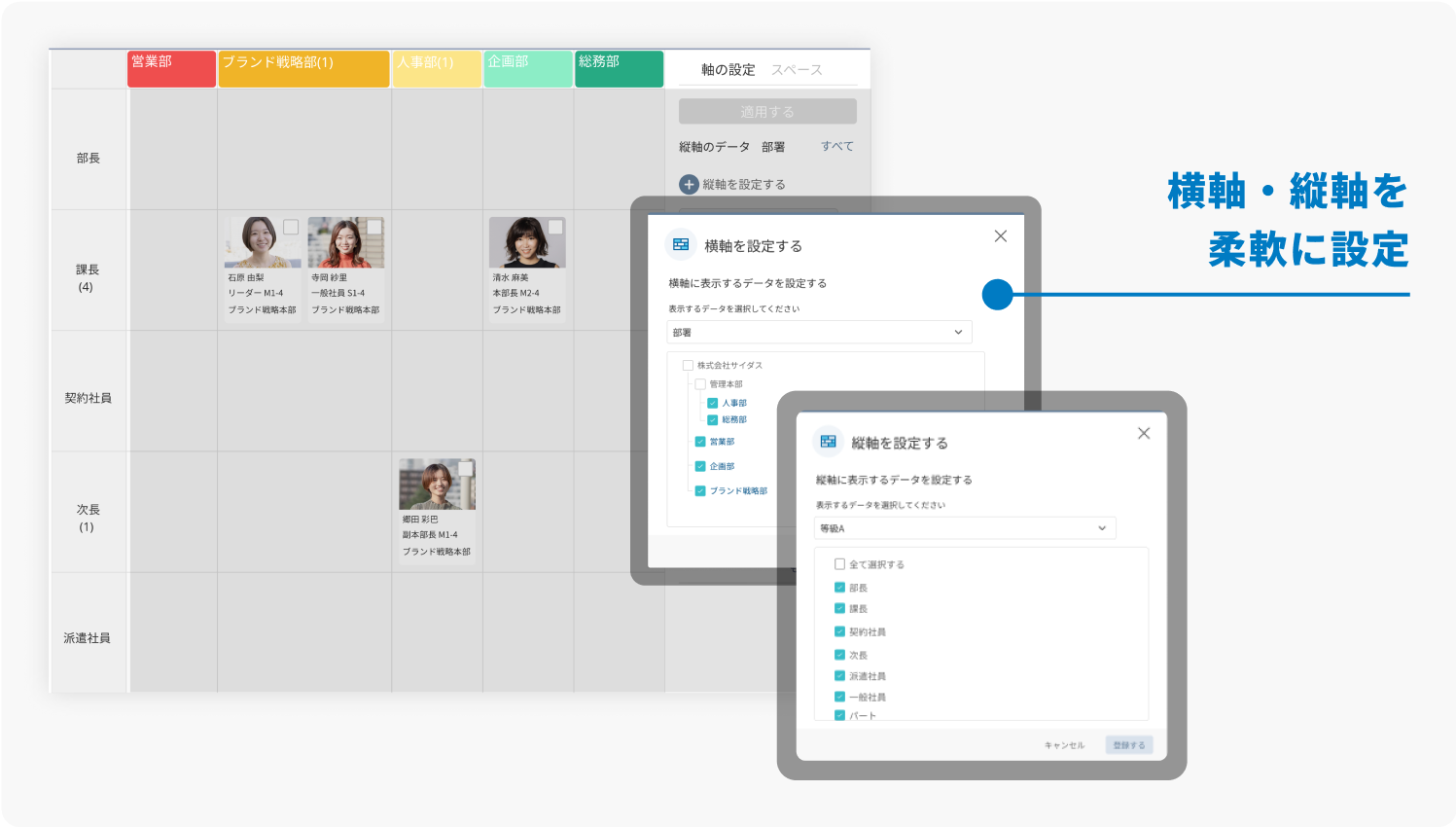 ・発令や組織図生成などの組織管理