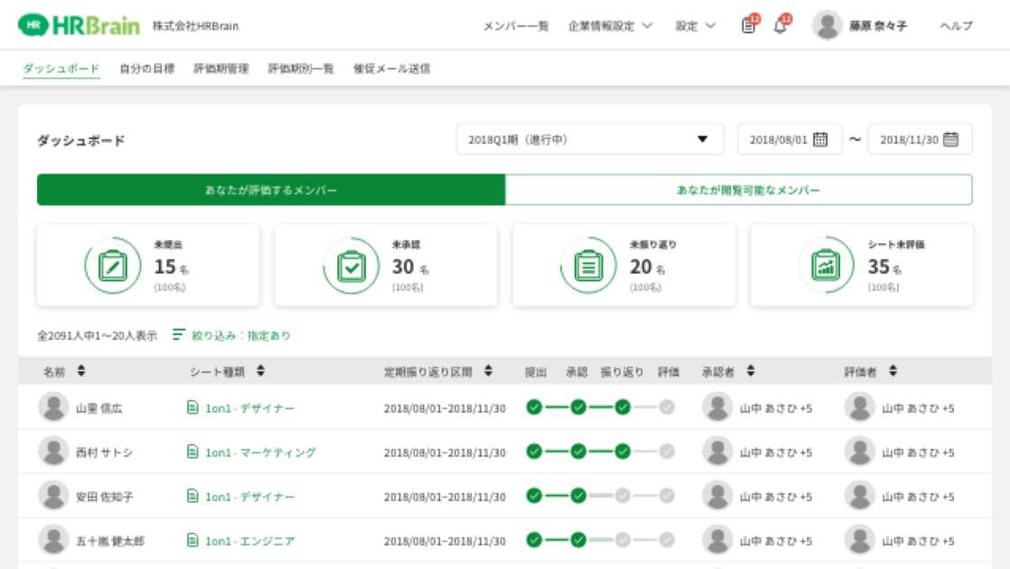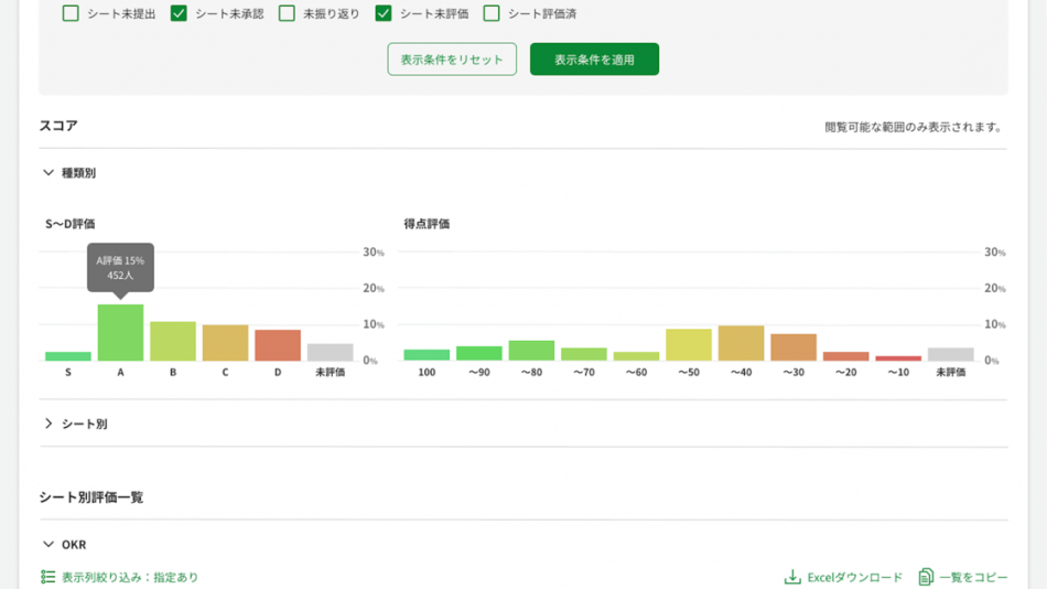 ・人事評価の集計も完全自動化。進捗管理や共有もワンクリックで可能