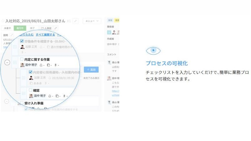 チェックリストでプロセスを可視化し、リアルタイムに進捗を共有。