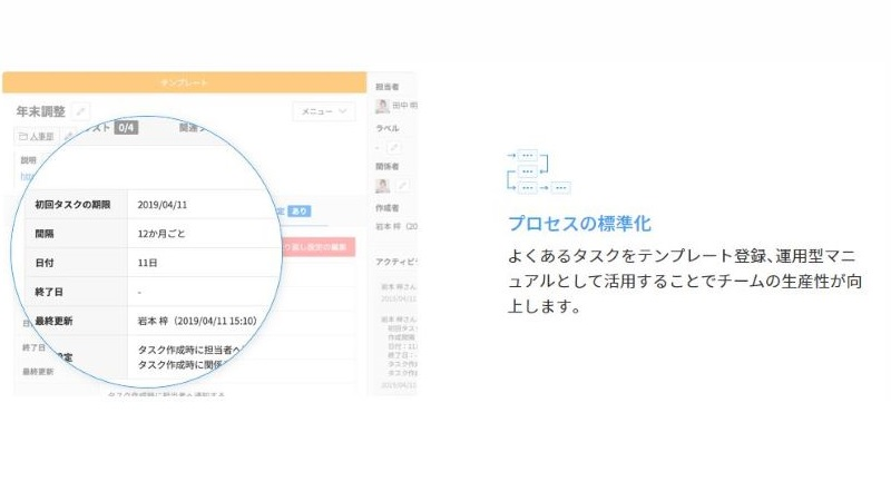 よくあるタスクをテンプレート登録、運用型マニュアルとして活用することでチームの生産性が向上します。