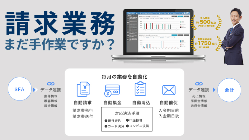 丸2日かかっていた請求業務を3時間まで圧縮。請求・消込・催促の一連の作業を自動化するクラウドサービスです。