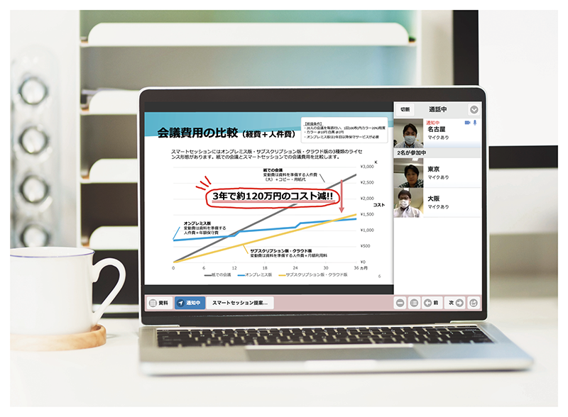 会議にかかるコストは、紙やコピー代だけではありません。会議の準備にも人のコストがかかっています。スマートセッションを利用すれば、用意した資料をアップロードするだけで、準備は完了します。紙やコピー代だけではなく、人のコスト削減にも繋がります。
