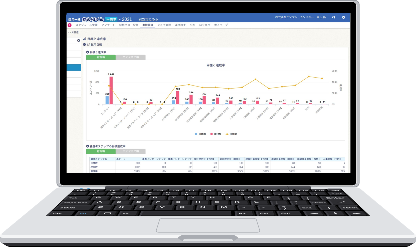 応募者管理、説明会、採用チームのタスク進捗、選考、内定、結果分析など採用管理に付随する管理すべきポイントを全て対応可能。充実した機能と圧倒的低価格を実現した採用管理システムです。