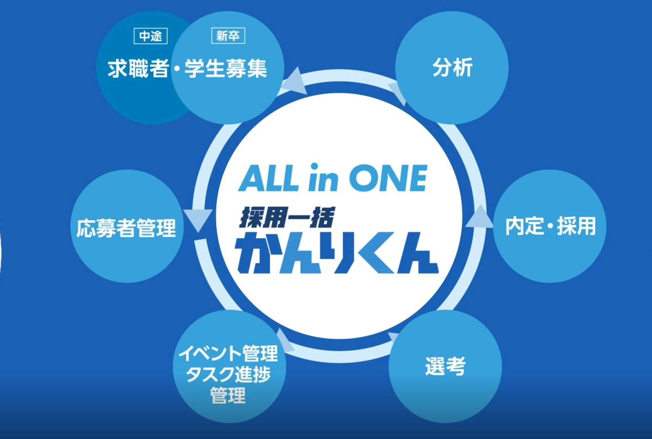 採用一括かんりくんは、人材紹介サービスのHRクラウドが作りあげた現場志向のAll In One型採用管理システム。