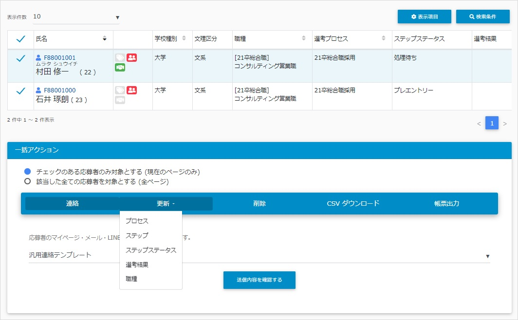 「ジョブスイート フレッシャーズ」は、新卒採用の特徴を踏まえ、運用に必要な機能をどなたでも簡単にお使いいただけるシンプルな設計でご提供いたします。