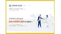「クラウドハウス採用」は、採用管理だけでなく自社採用HP経由の応募数を増加させるクラウド型採用支援システムです。独自デザイン可能な採用HP/求人制作に加え、入社手続きや従業員情報管理までワンストップに人事データの集約・活用が可能です。