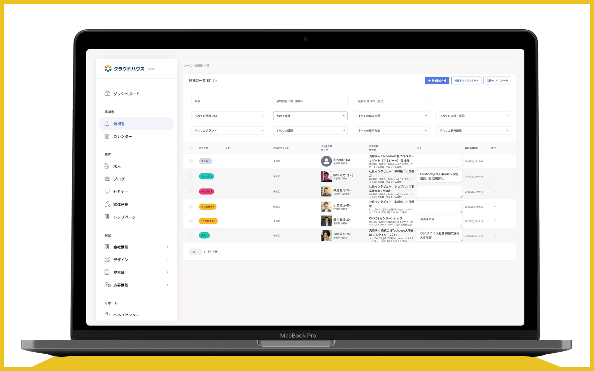 ・独自のステータス管理や管理項目(応募者一覧画面や応募情報)に柔軟にカスタマイズが可能