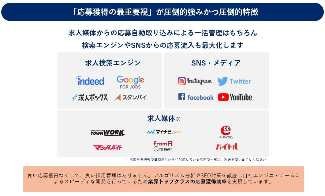 ・Googleを始めとしたIndeed、求人ボックス、Googleしごと検索などの検索エンジンとの自動連携