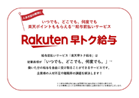楽天早トク給与は従業員が働いた分の給与を、給与支給日を待たずに受け取れるサービスです。