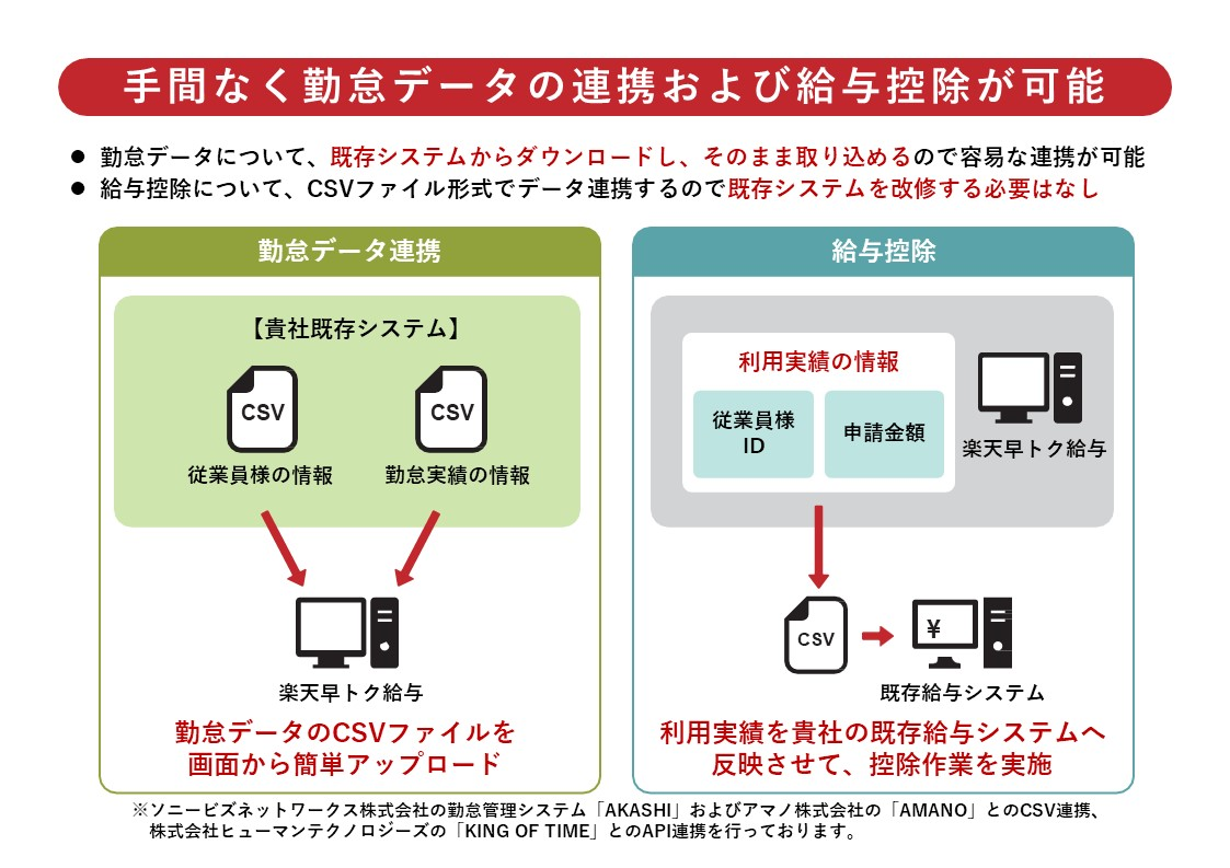また、給与控除については企業指定のフォーマットにてデータの連携を行うため、