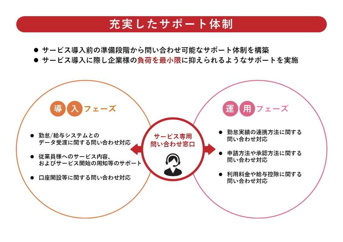 企業様・従業員様ともに手厚いサポートを受けることができます。