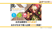 利用数500社突破!導入費用0円、システム利用料0円~!スマホでかんたんに注文・キャンセル!クレジットカード決済でらくらく管理!「おべんとね!っと」は、従業員とお弁当会社を繋ぐ、お弁当注文・決済代行サービスです。大手優良企業を含めた多くのお弁当屋さんと提携。管理栄養士監修で安心・安全。おいしくてヘルシーな絶品のお弁当をオフィスにお届けします。※1食200円~300円でお試し頂けます。ぜひお気軽にお問合せください。