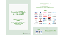 ・Questetra BPM Suite を知る上で大事な3つのキーワード - キーワード1 BPM とは - キーワード2 BPMN とは - キーワード3 BPMS とは ・3つのキーワードの関係 BPM / BPMN / BPMS ・一般的なワークフローシステムとの違い ・企業向けBPMSのスタンダード ・BPMSの可能性 ・BPMSがもたらす価値 - PDCAサイクルが回る - 人の判断を組み込める - 自動化できる - 独自のルールが一目でわかる - 仕組み化できる ・価格体型 ・機能 ・画面と対応デバイス ・まずは無料トライアル ・株式会社クエステトラ について ・付録 - 各画面イメージと機能概要