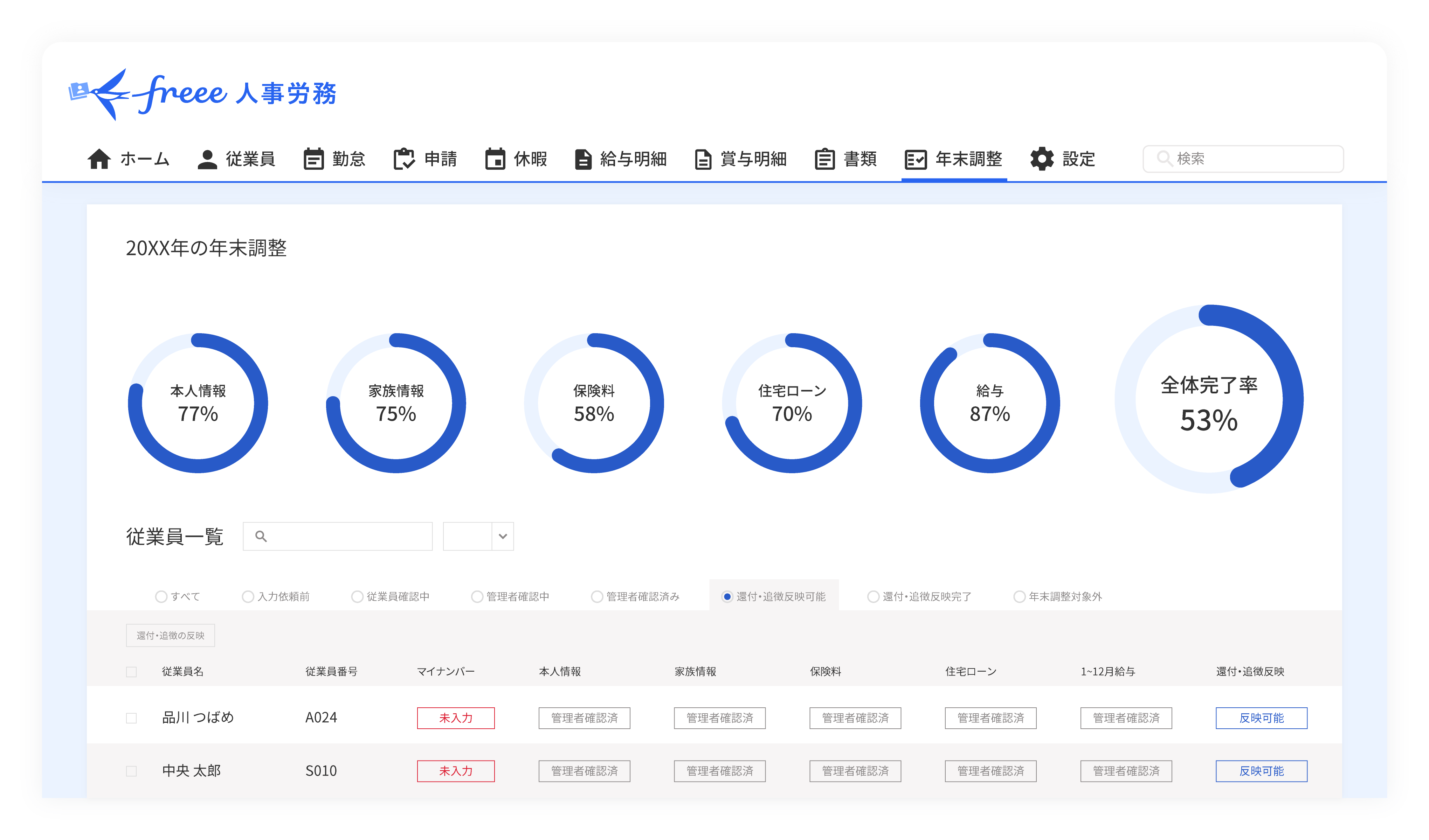 従業員の入力状況はリアルタイムで確認できるので、書類回収状況を気軽に確認できます。