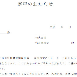 従業員に定年退職の旨を通知する書式